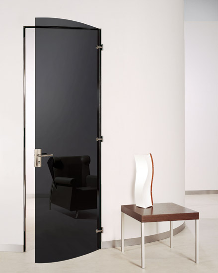 - внутреннее свечение. Прозрачность дверей из чёрного триплекса варьируется в зависимости от толщины стекла и интенсивности цвета. Но, даже скрывая обзор, они пропускают небольшое количество света и рассеивают его, делясь с пространством таинственным мерцанием. А различные техники художественной обработки позволяют усовершенствовать данный эффект, предлагая новые варианты обыгрывания лучей.